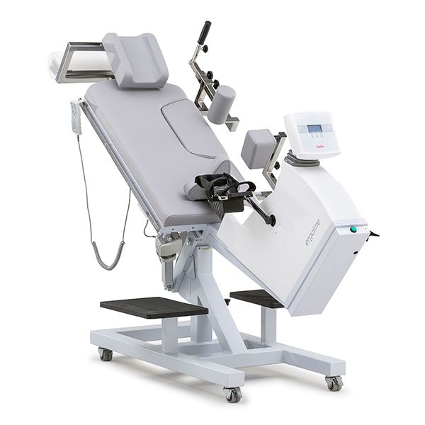 The ideal tilt-recline ergometer for dynamic stress echocardiographic examinations. The angle of inclination can be electrically set both horizontally and laterally between 0 and 45°. The drop section of the couch facilitates the ultrasound examination. Multiple adjustable support elements also provide the patient with stability in the lateral position. Free programming of exercise protocols, intuitive operation, and universal ECG interfaces set this reclining ergometer apart. Numerous options and a comprehensive set of accessories are also available.