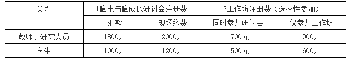 2)參加腦電與腦成像研討會(huì)和工作坊的注冊(cè)費(fèi)為2500(教師匯款)或1500元(學(xué)生匯款);僅參加其中之一的,按照上表繳費(fèi)。