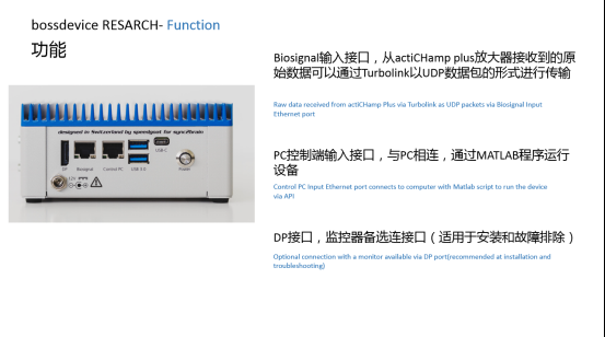 bossdevice RESEARCH:是一個由硬件和軟件算法組成的實時數字信號處理器。它旨在從生物信號放大器(腦電圖,EEG)讀取實時原始數據流,持續分析該數據并根據不同頻率的振蕩檢測模式。