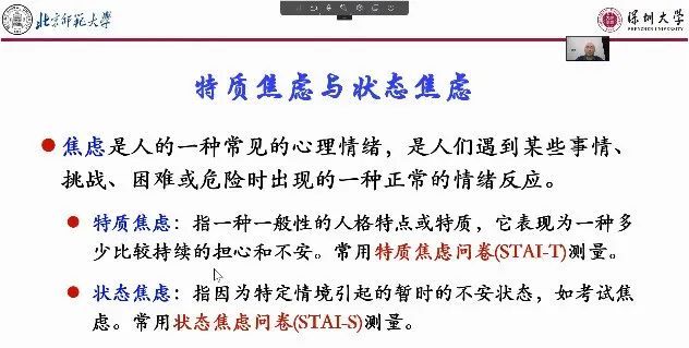 焦慮是人類的基本情緒之一,但過度焦慮會造成心理和身體的雙重?fù)p傷。物質(zhì)焦慮是一種一般性的人格特定或特質(zhì),表現(xiàn)為一種或多或少持續(xù)性的擔(dān)心和不安。狀態(tài)焦慮是因?yàn)樘囟ㄇ榫诚乱鸬臅簳r(shí)的不安狀態(tài),如考試焦慮、面試焦慮等。