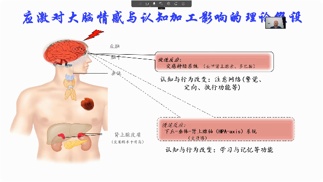 應(yīng)激引起的交感神經(jīng)系統(tǒng)的快速反應(yīng)會引起個(gè)體在情緒上的喚醒和警覺性的提高,進(jìn)而引起HPA-軸的慢速反應(yīng),則會引起個(gè)體學(xué)習(xí)及記憶等功能的改變。