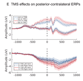 在經(jīng)顱磁刺激IPS區(qū)域之后,這些后對(duì)側(cè)ERP成分的振幅得到增強(qiáng)(圖2E)。