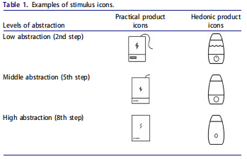 在產(chǎn)品分類領(lǐng)域,主流研究將產(chǎn)品分為娛樂類和實用類,以往的研究已經(jīng)發(fā)現(xiàn)了產(chǎn)品類型和消費者購買傾向之間的相關(guān)性,但這些研究很少與圖標(biāo)設(shè)計領(lǐng)域交叉。事件相關(guān)電位(ERPs)由于具有較高的時間分辨率,適用于揭示個體對刺激的注意和感知的神經(jīng)過程。本研究旨在通過腦電圖分析,探討實用和娛樂產(chǎn)品圖標(biāo)在不同抽象層次上的認知機制。