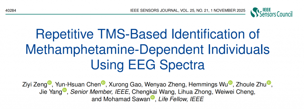 Zeng, Z., Chen, Y. H., Gao, X., Zheng, W., Wu, H., Zhu, Z., ... & Sawan, M. (2025). Repetitive TMS-based Identification of Methamphetamine-Dependent Individuals Using EEG Spectra. IEEE Sensors Journal.