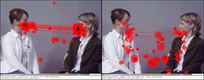 Uppsala大學的嬰兒發展研究機構利用眼動儀研究了正常嬰兒和孤獨癥嬰兒的的不同社交能力