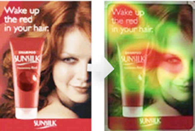 眼動儀可以將顧客注視廣告時的眼動軌跡記錄下來,通過分析記錄的數據,可以清楚地了解顧客注視廣告時的先后順序,對畫面的某一部分(分析結果時可以劃分興趣區間)的注視時間、注視次數、眼跳距離、瞳孔直徑(面積)變化等。并以此來分析廣告觀看者的心理活動,這有助于廣告商了解到廣告受眾是否按廣告制作人的意圖去注視廣告,是否漏看了廣告主(出資人)最為關注的諸如公司名稱、商品名稱及與眾不同的特點、品牌標記等重要信息。通過眼動分析可以為廣告設計者對廣告布局(重要信息的位置)、插圖和文案進行合理的安排提供有用的依據,也為評價廣告設計效果提供了客觀指標。