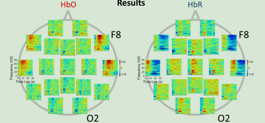 該論文使用全腦近紅外測(cè)量系統(tǒng)(19光源和19探測(cè)器)布置在國(guó)際10-20系統(tǒng)中(FP1, FP2, F4, C4, P4,O2, F8, T4, T6, Fz, Cz,Pz, F3, C3, P3, O1, F7, T3, and T5),是一種全新的近紅外功能成像測(cè)量研究,以往近紅外結(jié)合腦電測(cè)量往往只測(cè)量一個(gè)區(qū)域或者幾個(gè)電極點(diǎn),沒有深入研究出腦電和近紅外結(jié)合的深入范式。