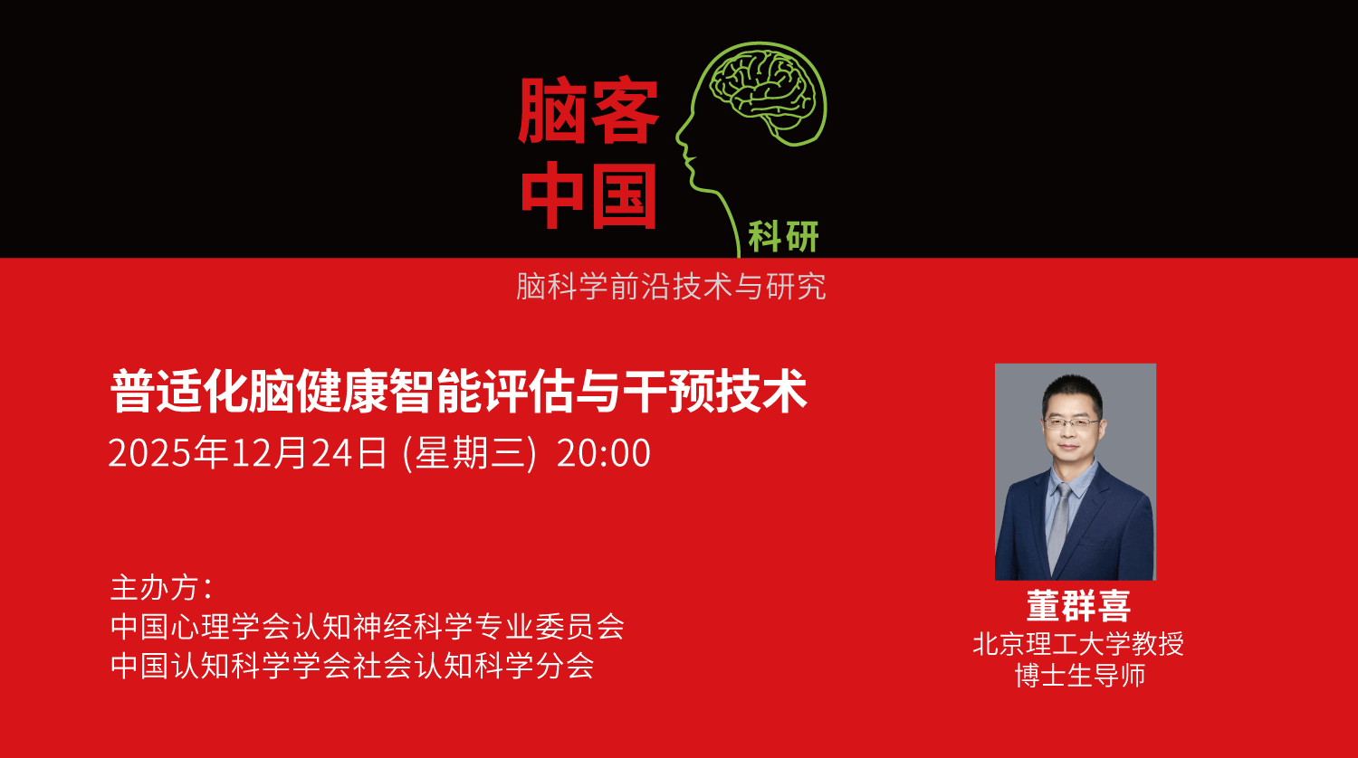 【直播預告】12月24日20點 | 董群喜:普適化腦健康智能評估與干預技術