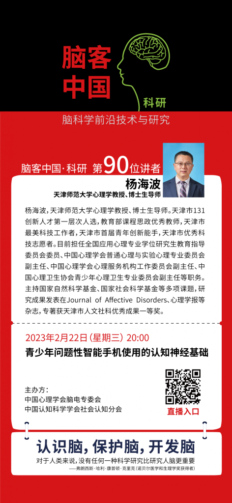 【直播預(yù)告】 2月22日晚20點(diǎn) 楊海波:青少年問題性智能手機(jī)使用的認(rèn)知神經(jīng)基礎(chǔ)