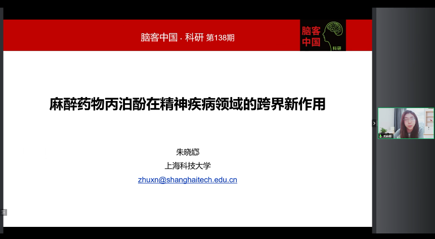 2024年3月27日晚20點,上海科技大學生命科學與技術學院朱曉娜副研究員作為腦客中國科研第138位講者為大家?guī)碇黝}為《麻醉藥物丙泊酚在精神疾病領域的跨界新作用》的報告。以下內容節(jié)選自直播視頻: