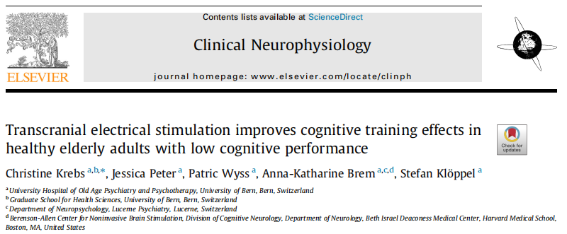 本研究Transcranial electrical stimulation improves cognitive training effects in healthy elderly adults with low cognitive performance發表于2021年的Clinical Neurophysiology(5-Years IF=3.9),來自瑞士伯爾尼大學的Christine Krebs等人為本文的第一作者。