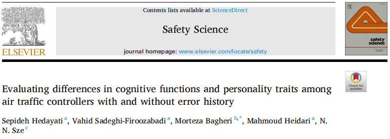 本研究Evaluating differences in cognitive functions and personality traits among air traffic controllers with and without error history 發表于2021年的Safety Science(5-Years IF=5.3),伊朗Shahid Beheshti大學的教育與心理學院為本文的第一作者。