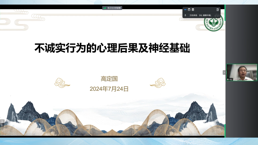 2024年7月24日晚20點(diǎn),中山大學(xué)心理學(xué)二級(jí)教授高定國老師作為腦客中國科研第152位講者為大家?guī)碇黝}為《不誠實(shí)行為的心理后果及神經(jīng)基礎(chǔ)》的報(bào)告。以下內(nèi)容節(jié)選自直播視頻: