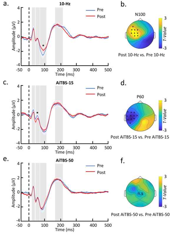 相較于傳統高頻rTMS,AiTBS對皮層興奮性的影響尚不明確。通過應用TMS-EEG技術,我們能夠系統地比較在不同時間點上,AiTBS與10-Hz rTMS對皮層興奮性的作用,并與傳統的臨床實踐進行對照。